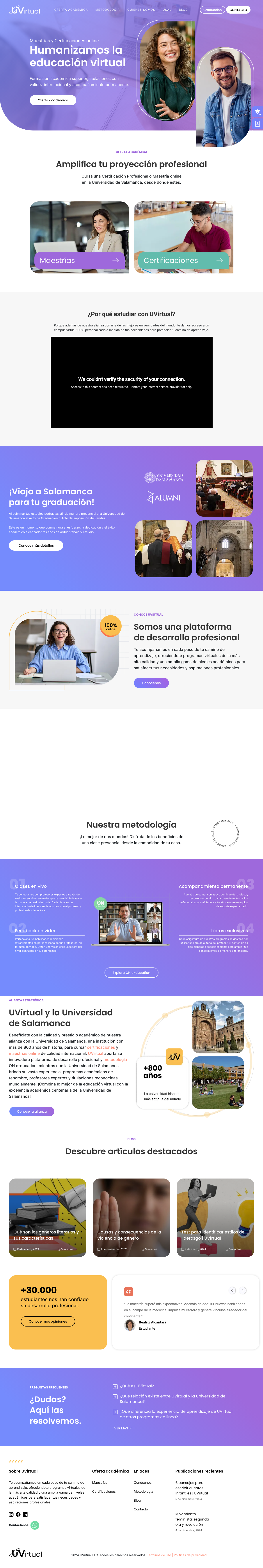 更多UVirtual是一家提供在线教育的平台,与萨拉曼卡大学合作,提供具有国际认可的高等教育和专业认证。主营业务包括在线专业认证和硕士学位课程,强调个性化虚拟校园体验,结合在线直播课程、视频反馈和持续辅导,使用独家教材,旨在满足不同学术和职业发展需求。