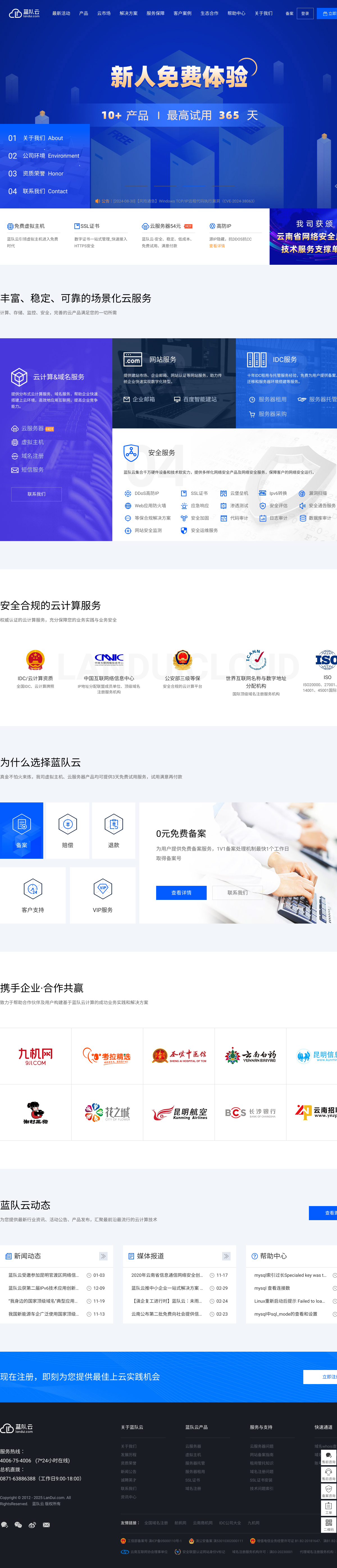 蓝队云提供全面的云计算服务和IDC服务,包括云服务器、云虚拟主机、域名注册、短信服务等。同时,还提供安全服务如SSL证书、Web应用防火墙等,以及企业服务包括域名服务、备案服务等。