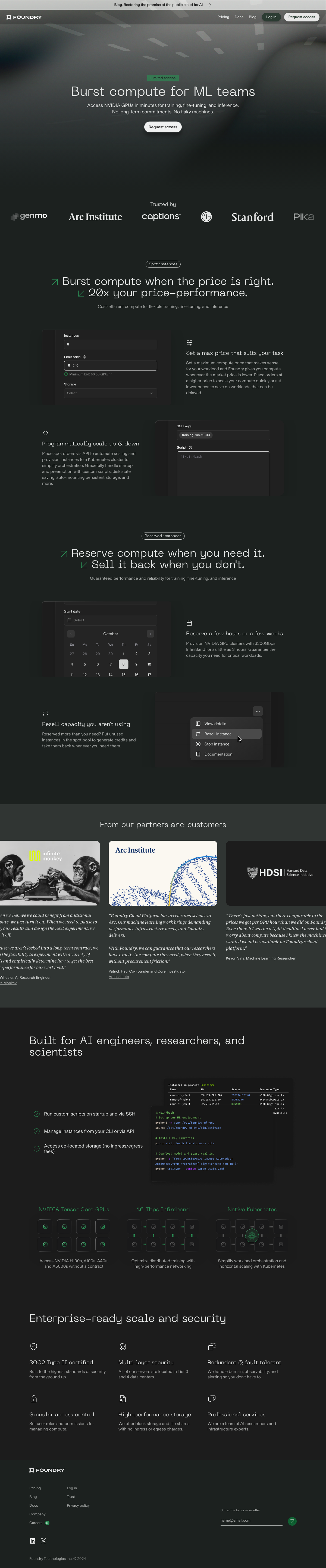 Foundry是一个自助式云平台,专为机器学习研究和基础设施团队设计。