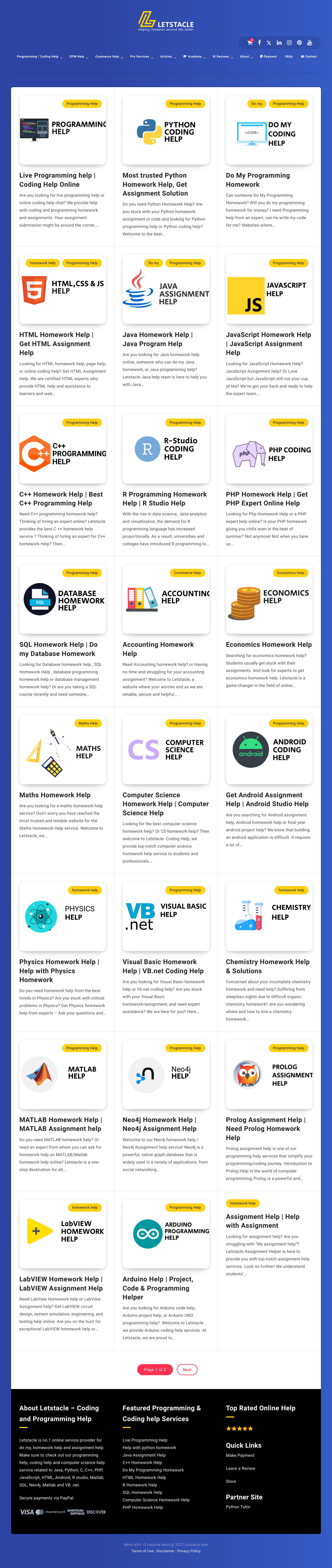 Letstacle是一个在线编程和作业帮助平台,提供多种编程语言和科目的作业帮助服务。