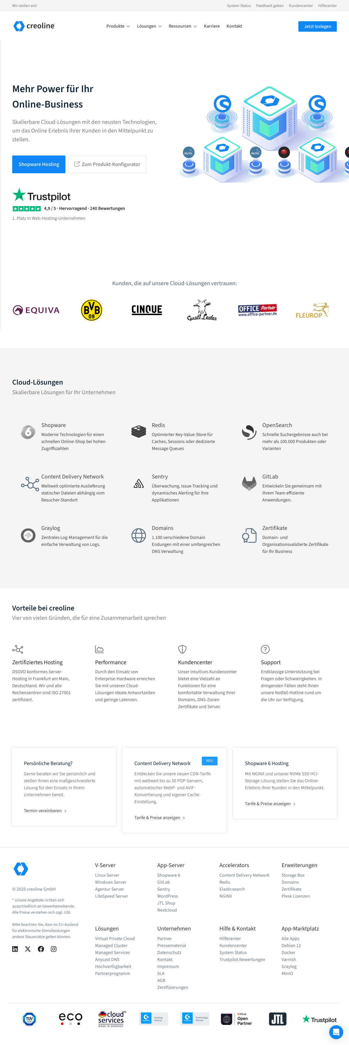 更多Creoline GmbH 提供可扩展的云解决方案,专注于在线项目,包括V-Server、App-Server、Accelerators和Erweiterungen等产品,以及网络和Services解决方案。公司强调其高性能、客户中心支持和DSGVO合规的主机托管服务,旨在通过最新技术提升客户在线体验。